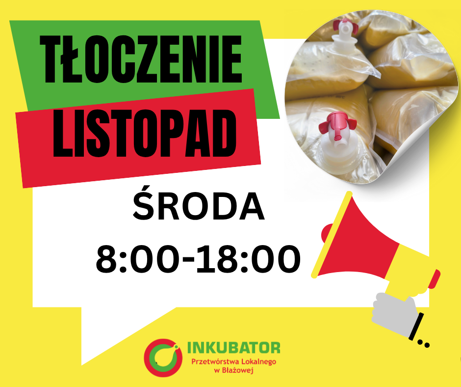 Bez kategorii ZMIANY DOTYCZĄCE TŁOCZENIA Opublikował/a Redaktor dnia 27 października 202527 października 2025 Od LISTOPADA tłoczymy w każdą ŚRODĘ, od 8:00 do 18:00. W przypadku dużej ilości chętnych, będziemy prowadzili zapisy na dodatkowe dni. Szczegóły oraz zapisy pod numerem telefonu: +48 661 578 033.